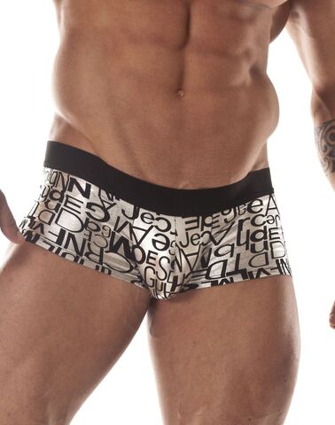 Серебристые сексуальные трусы-джоки с черными буквами