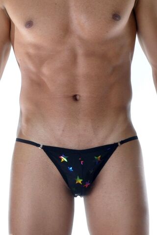 Черные мужские трусы-танга с разноцветными блестящими звездочками