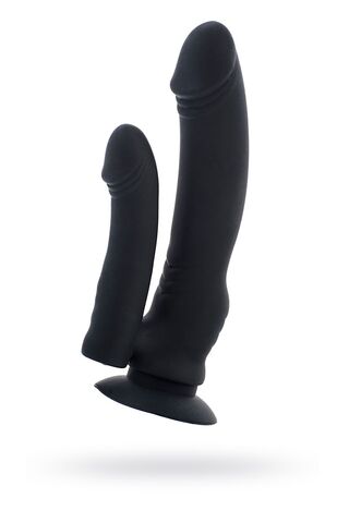 Чёрный вибратор для двойного проникновения - 19,5 см.