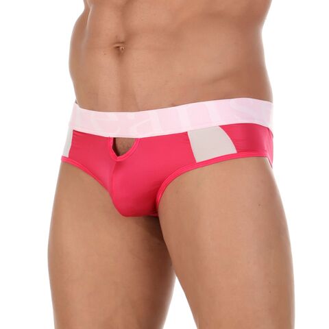 Мужские трусы-слипы из мягкой полупрозрачной ярко-розовой ткани
