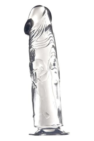 Прозрачный фаллоимитатор с фигурками на поверхности - 21,6 см.