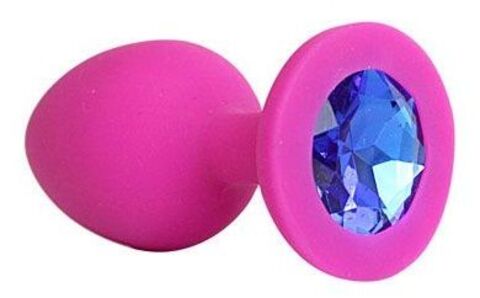 Ярко-розовая анальная пробка с синим кристаллом - 9,5 см.