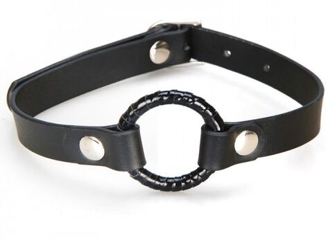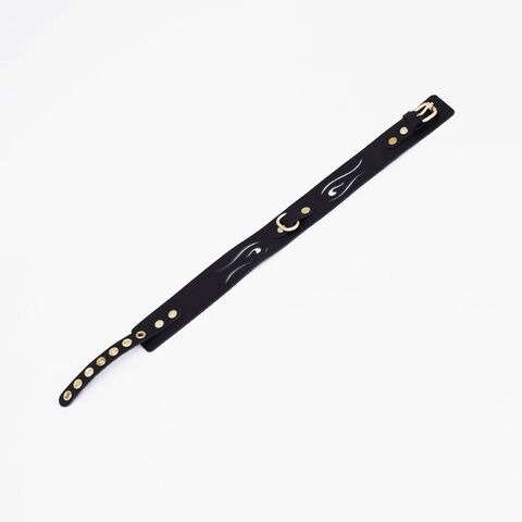 Чёрный кожаный ошейник с полукольцами и клёпками