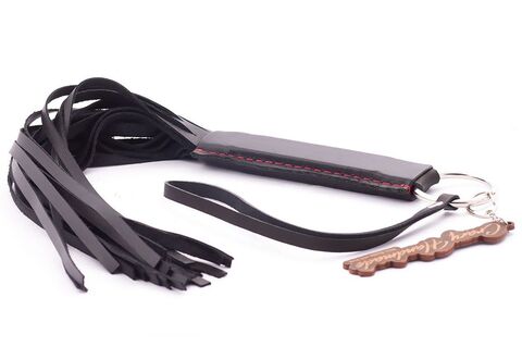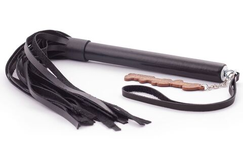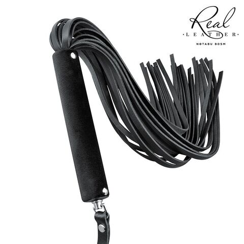 Черная кожаная плеть с удобной ручкой - 50 см.
