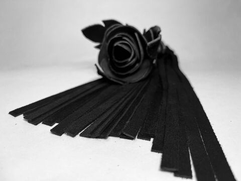 Черная кожаная плеть с розой в рукояти - 40 см.