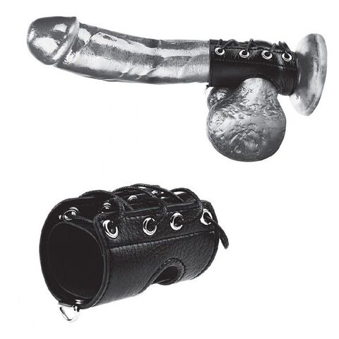 Чёрная утяжка на пенис со шнуровкой 100% PVC STRAP WITH METAL SNAP