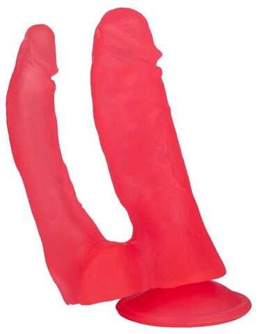 Двойной розовый стимулятор на присоске - 17 см.