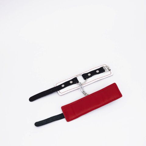 Бело-красные кожаные наручники