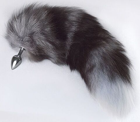 Серебристая анальная пробка с натуральным хвостиком