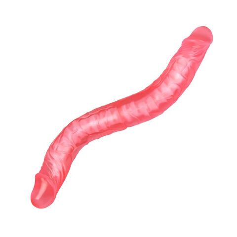 Розовый двусторонний гелевый фаллоимитатор - 44 см.
