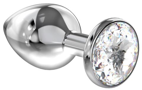 Большая серебристая анальная пробка Diamond Clear Sparkle Large с прозрачным кристаллом - 8 см.