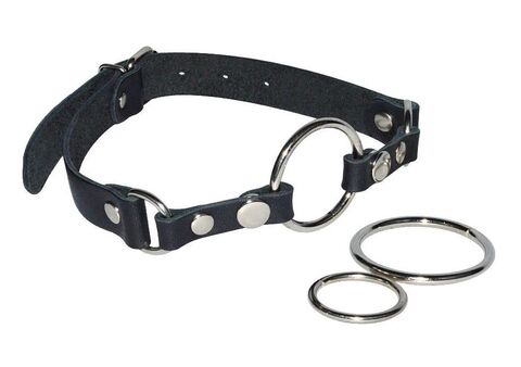 Кляп-кольцо на чёрных кожаных ремешках с застёжкой