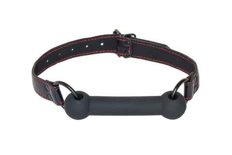 Чёрный кляп-трензель на кожаных ремешках с застёжкой