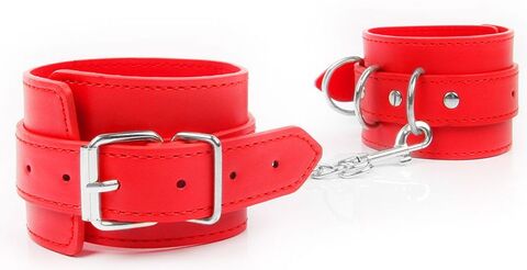 Красные наручники на регулируемых ремешках с цепочкой
