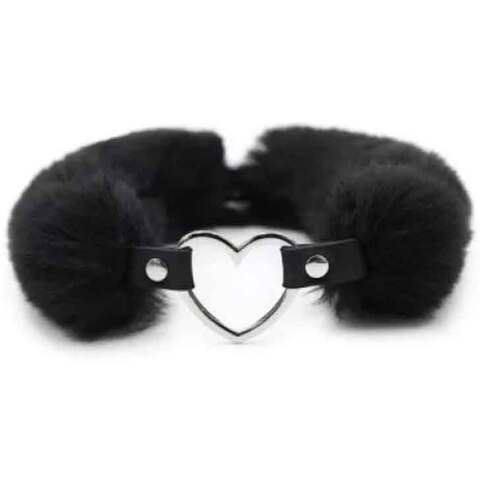 Черный меховой ошейник с металлическим сердечком