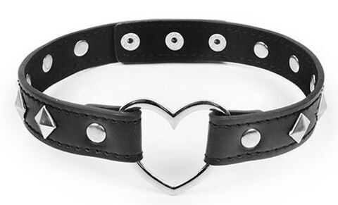 Черный ошейник с серебристыми ромбиками и сердечком