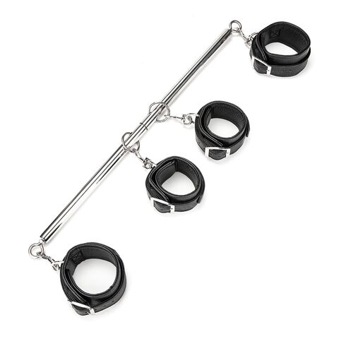 Две пары черных фиксаторов для рук и ног на металлической распорке Spreader Bar