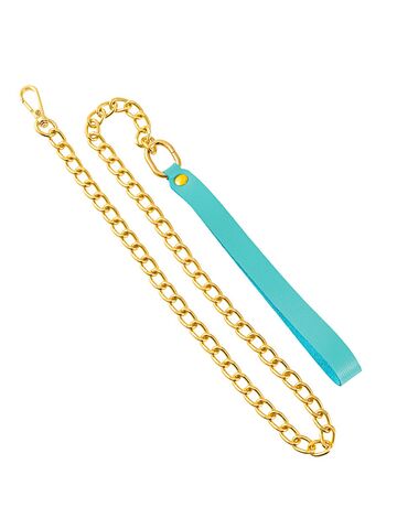 Голубой кожаный поводок с карабином для ошеи?ника - 80 см.