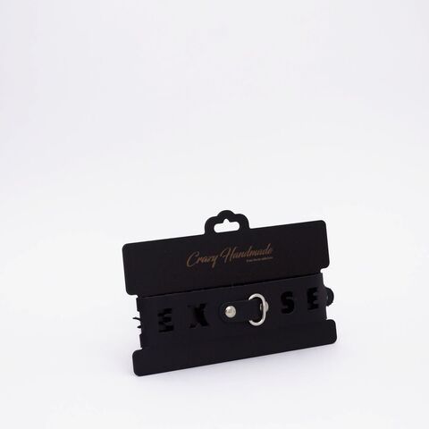Черный однослойный кожаный ошейник с имитацией фигурного воротничка