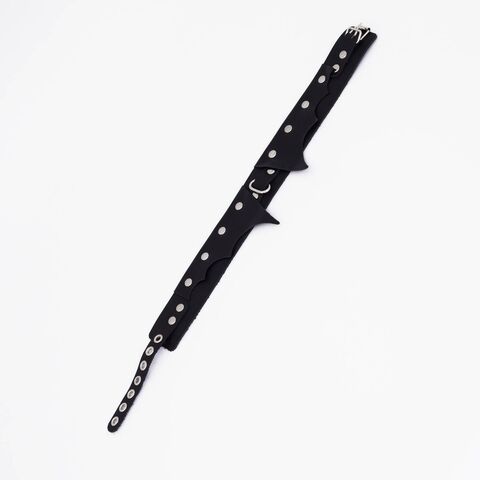 Черный ошейник с шипами и металлическим поводком-цепочкой