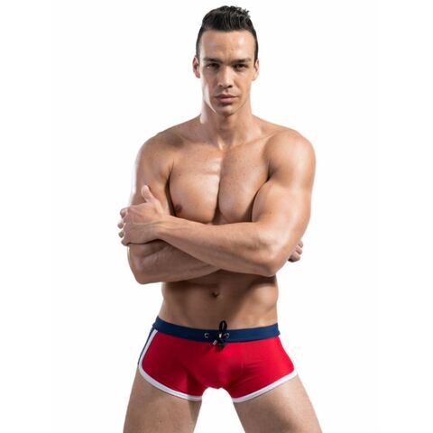 Ярко-розовые мужские плавки с контрастными полосами на поясе
