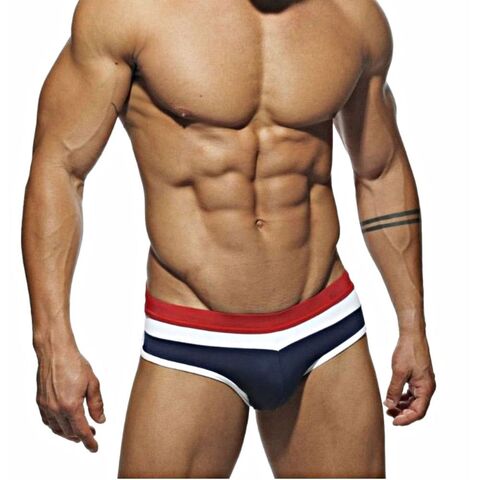 Темно-синие мужские плавки с контрастными полосами на поясе
