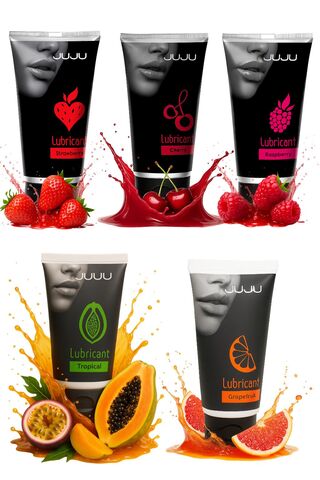 Набор из 5 съедобных лубрикантов JUJU (клубника, малина, тропические фрукты, вишня, грейпфрут)