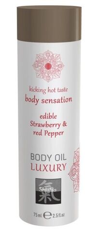 Съедобное массажное масло с ароматом клубники и красного перца - 75 мл.