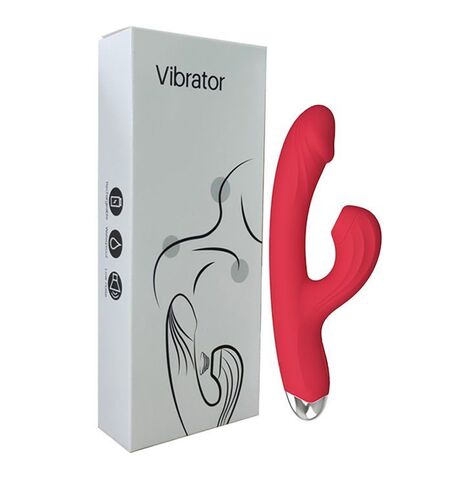 Красный силиконовый вибратор-кролик с вакуумным клиторальным отростком - 20,5 см.