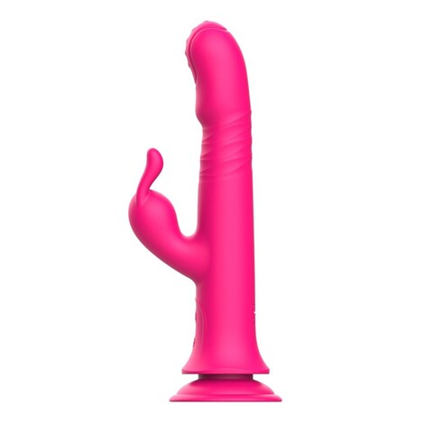 Розовый вибратор с клиторальным стимулятором ELLY с подогревом - 21,5 см.