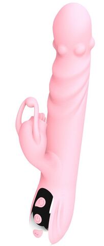 Розовый вибратор с клиторальным стимулятором Balle - 23 см.
