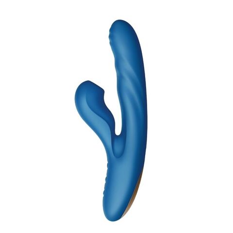 Голубой вибратор Otto с возвратно-поступательными движениями, вакуумом и подогревом - 22,2 см.