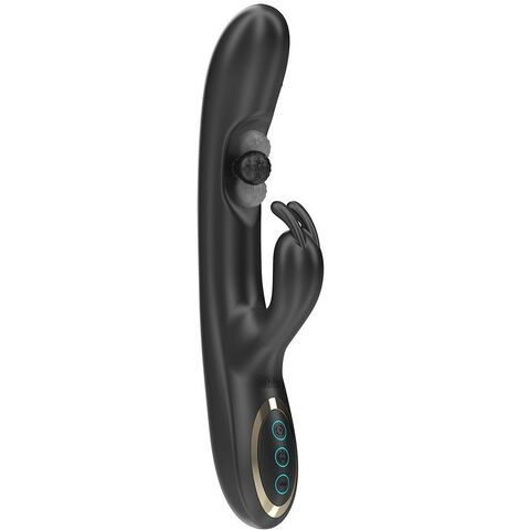 Черный вибратор-кролик с вращением бусин - 22 см.