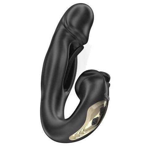 Черный вагинально-клиторальный вибратор с функцией маятника - 18 см.