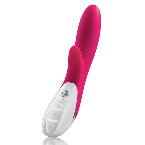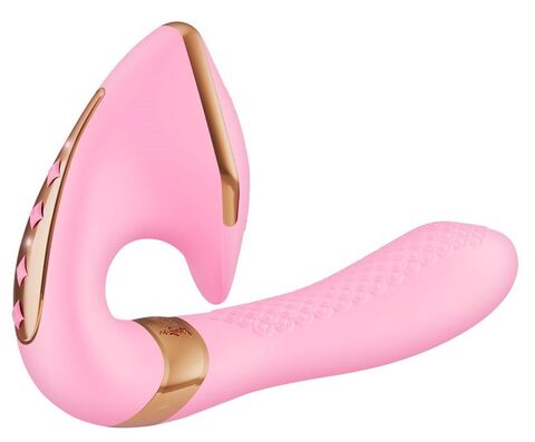 Розовый перезаряжаемый вибратор с клиторальным стимулятором - 25 см.