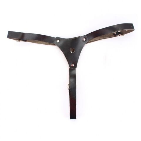 Чёрные кожаные трусики с двумя штырьками для насадок