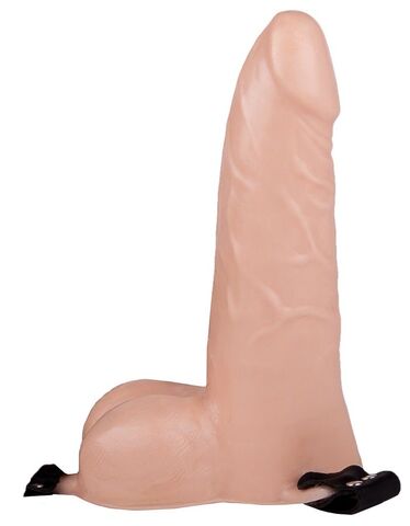 Пустотелый фаллопротез-реалистик на ремешках - 19 см.