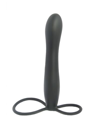 Черная насадка на член для двойного проникновения Tatum с вибрацией