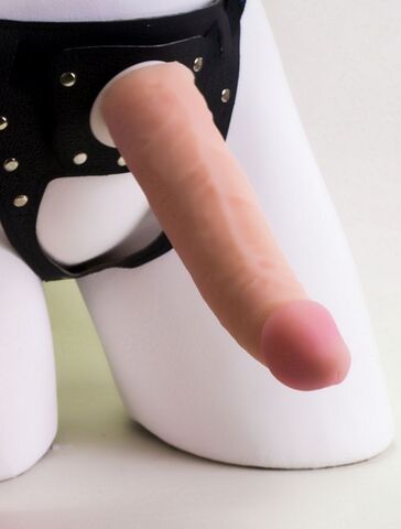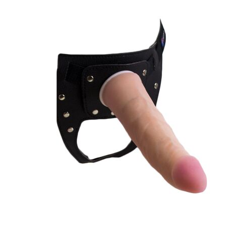 Телесный фаллопротез на черных эластичных ремнях 7 Inch Hollow Strap On - 17 см.