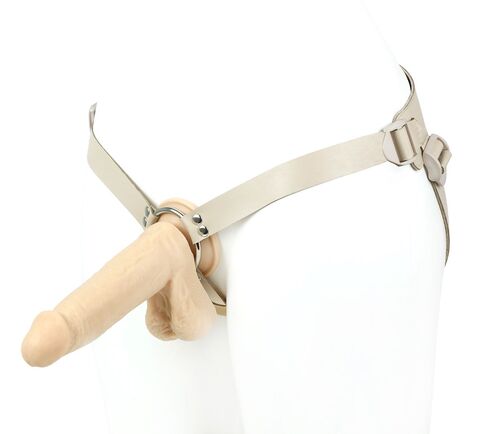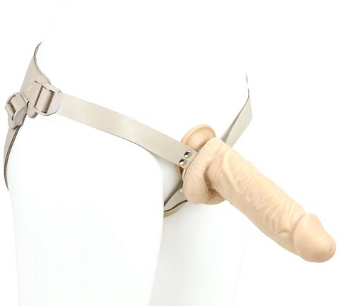Телесный страпон Harness с вагинальной пробкой - 19,5 см.