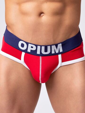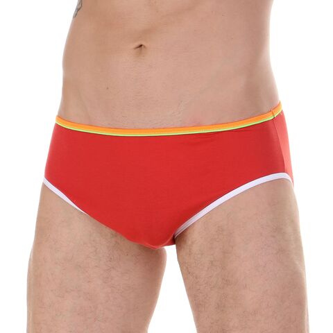 Красные мужские трусы-брифы с цветной каймой