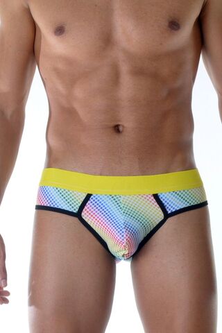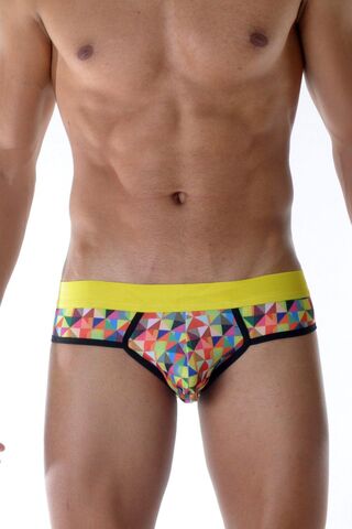Мужские трусы-слипы с цветной пришивной резинкой и геометрическим принтом