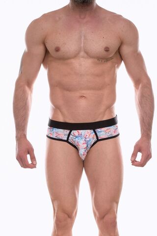Мужские трусы-брифы с разноцветным принтом в виде штампов