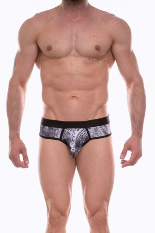 Темно-серые трусы-брифы с принтом в виде газетных листов