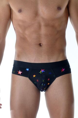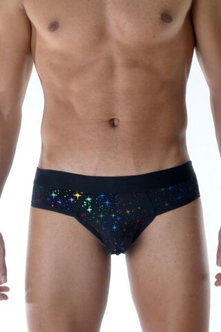 Черные мужские трусы-слипы с разноцветными блестящими звездочками