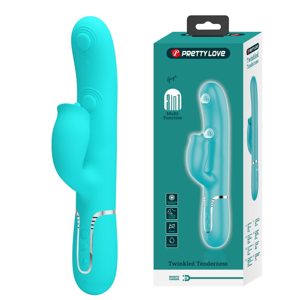 Аквамариновый вибратор-кролик с пульсацией Gigi - 22,8 см.
