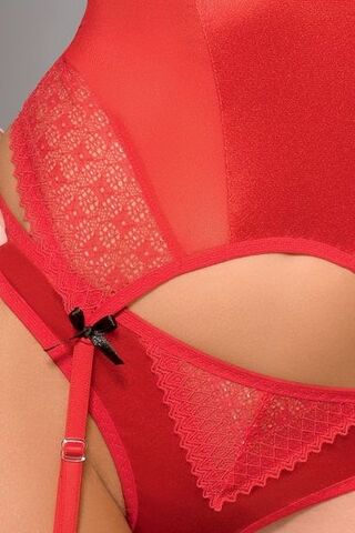 Алый корсаж Essence с нежными кружевными вставками. В комплекте: корсаж, стринги.