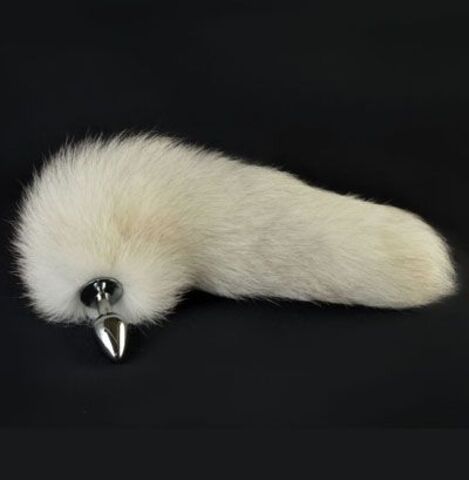 Анальная металлическая пробка с натуральным белым хвостиком. Длина хвоста - 30-35 см.