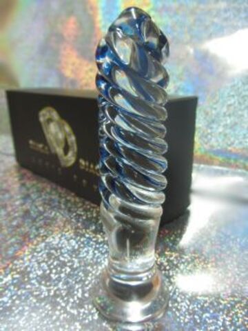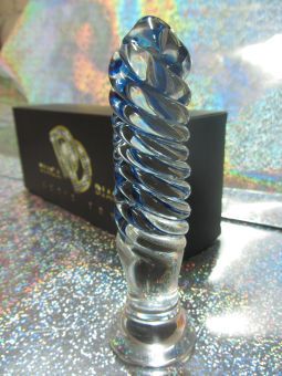 От одного вида этого стеклянного шедевра захватывает дух, не правда ли? Ствол этой секс-игрушки – закрученная спираль с изящными вкраплениями синего стекла.