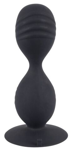 Анальные шарики на жесткой сцепке Backdoor Friend Double. Внутри каждого шарика расположен вращающийся от движений стимулирующий шарик. Основание-присоска.